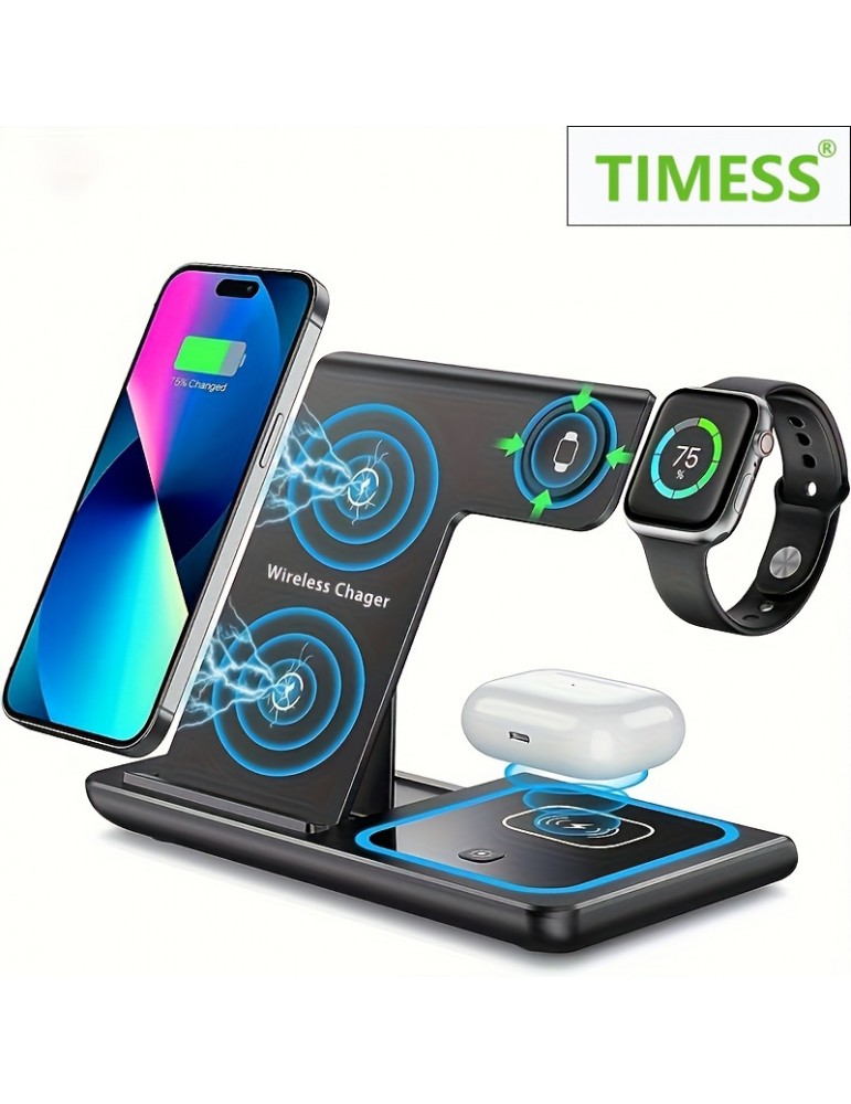 TIMESS--Your Ultimate Desk Charging SolutionTIMESS focus on the improvement and sale of wireless charging station, the stand can charge all your devices on one place at the same time, it helps to clean up a lot of messy cables on your nightstand and makes your life more tidy, to provide a more convenient life for you with technology.